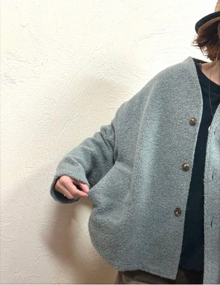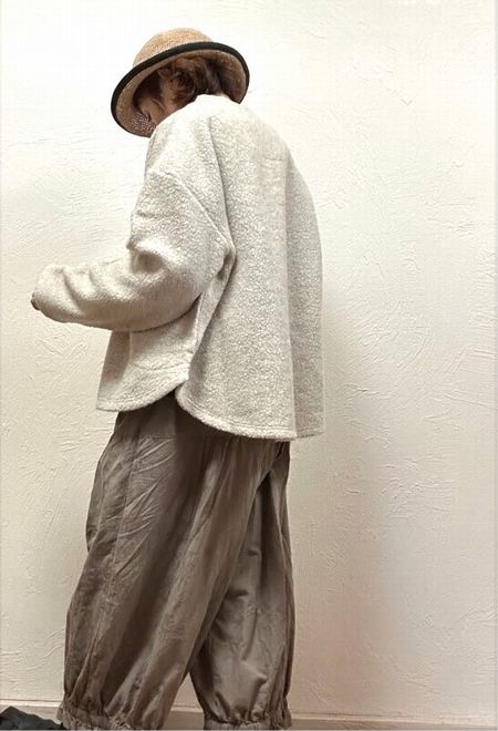 軽くて柔らかなウォーム感のあるシープパイルニット生地を使用したカーディガンです