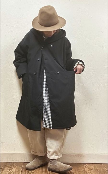二枚仕立てで暖かなコットン馬布ピーチ起毛×裏フリースショールフードコートです